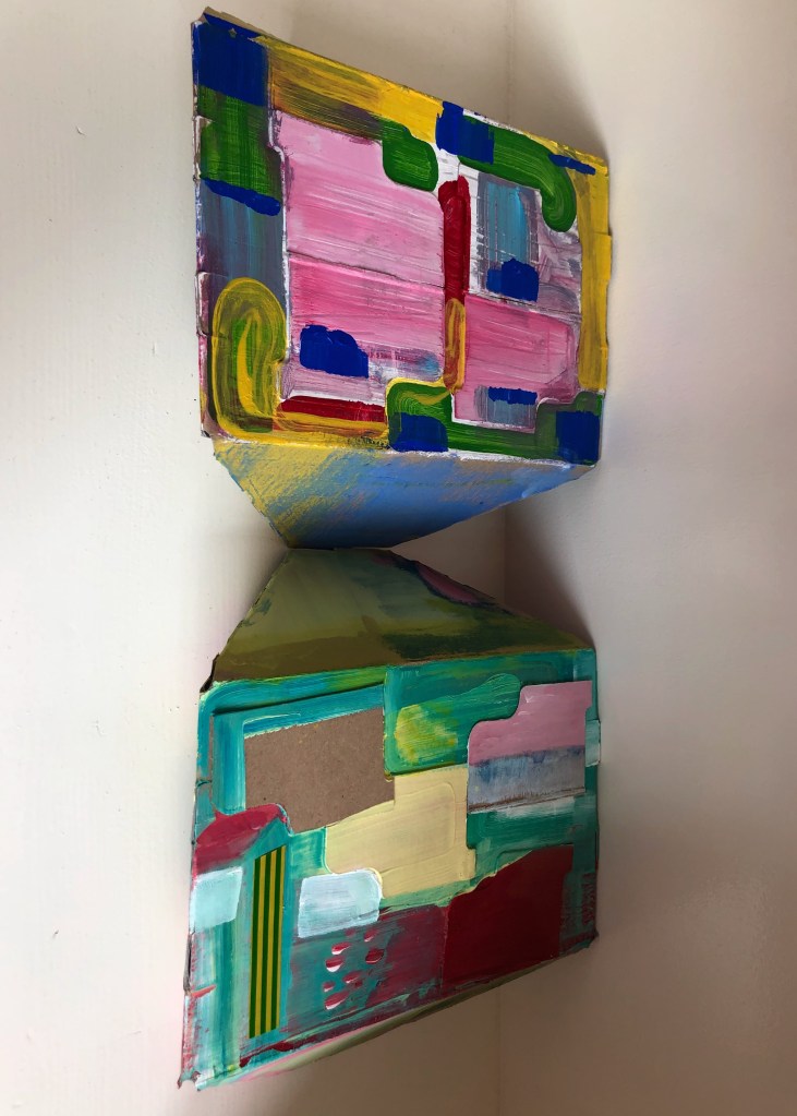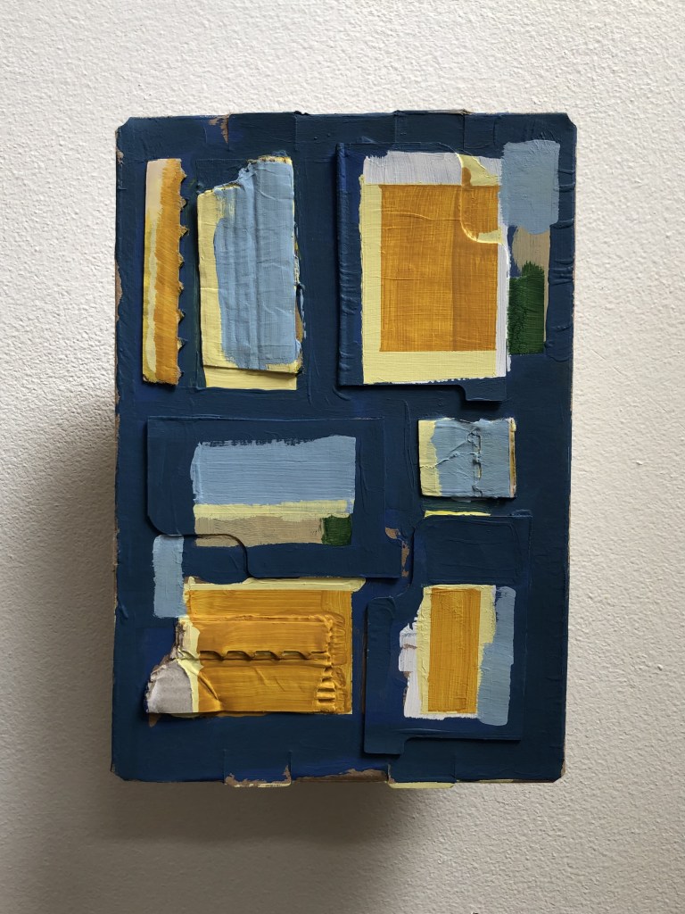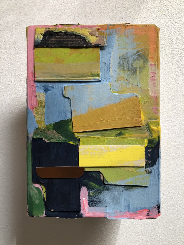 Art, assemblage, Contemporary Art, Dutch Contemporain Artist, Object art, Small paintingsDifferent outcomes with all the same packaging boxes from an AH verspakket, de-folded and re-arranged with an exploratory attitude to see what ingredients you can set out to make a painting without narrative.