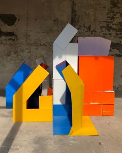Installations made with cardboard box sculptures. There are many possibillities to form landscapes or more solitary images.