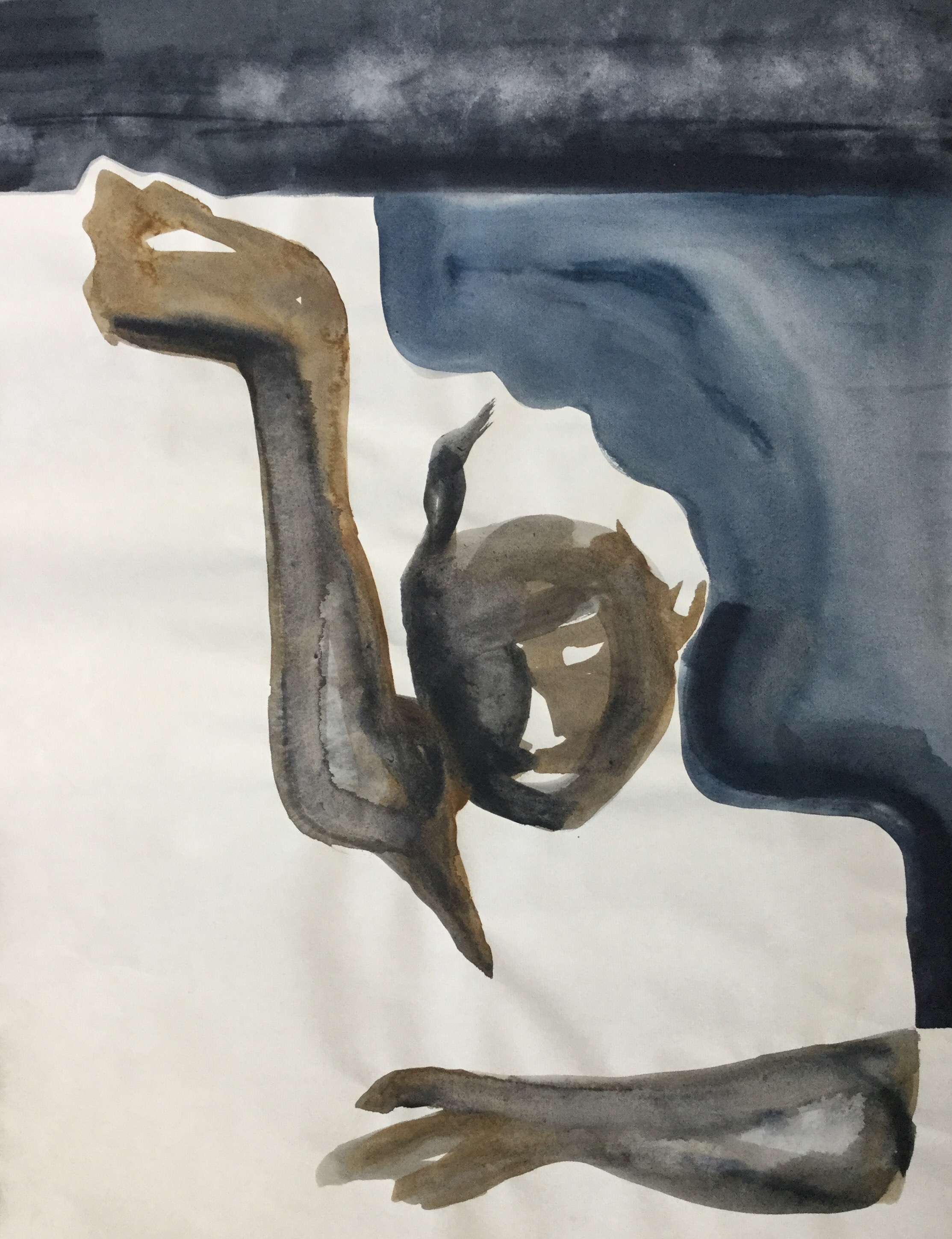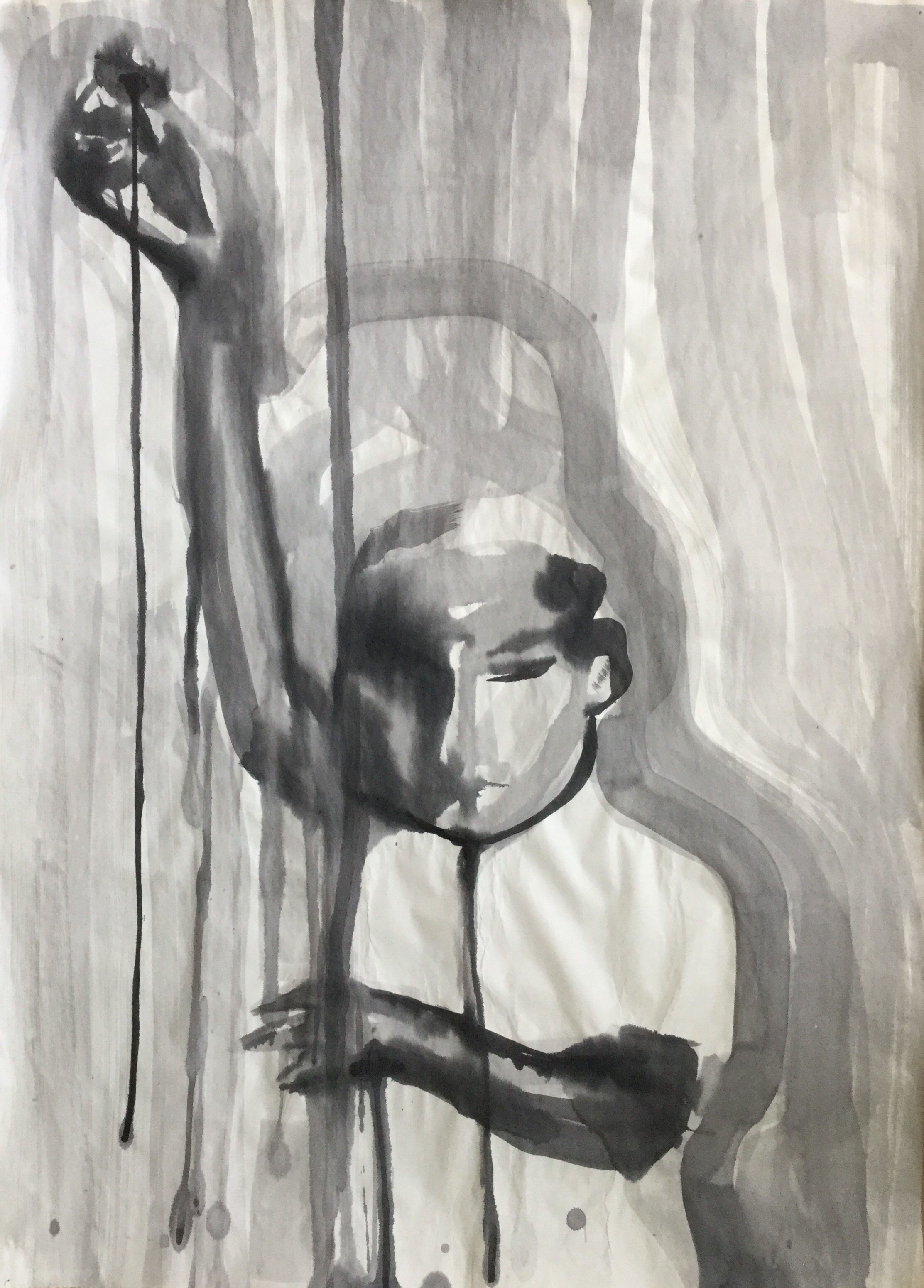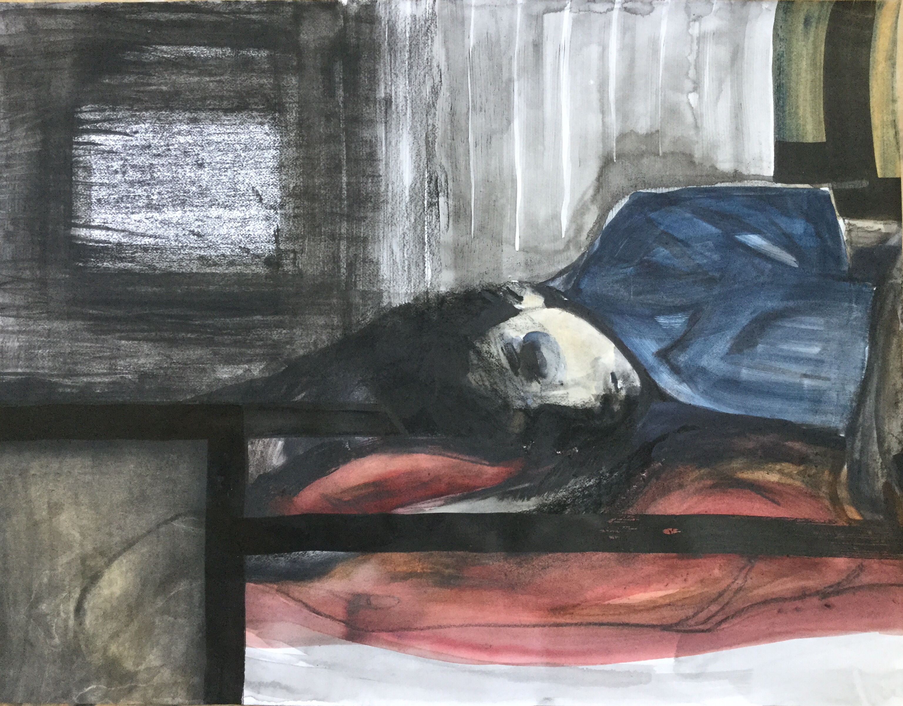 These are different works on paper, made with inkt, aquarel and pastel. All images are fiction and are originated from a newspaper photo of a girl sleeping on a hospital bed. When I started to draw, paint, the image of the person became another person with a different character. Due to a combination of material, choice of paper, expression and making choices in the actual image i’m creating, I could make a different work each day.